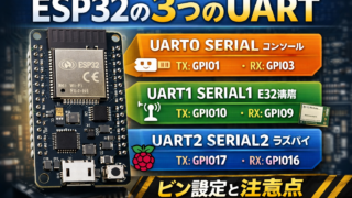要旨 ESP32のUARTを使っていましたが、理解せずに使っていたようなのでまとめてみました。 UART数 ・ESP32(Arduino)には UARTが3本ある UART0 / UART1 / UART2 ・デフォルト […]